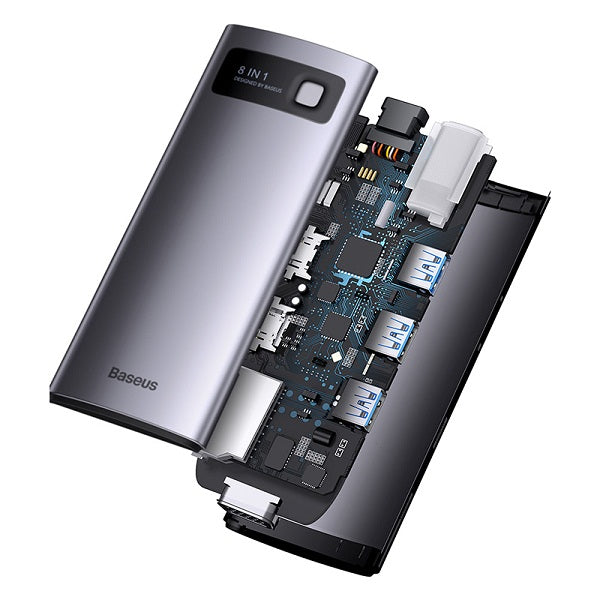 BASEUS METAL GLEAM SERIES 8-IN-1 MULTIFUNCTIONAL TYPE-C HUB DOCKING STATION GREY