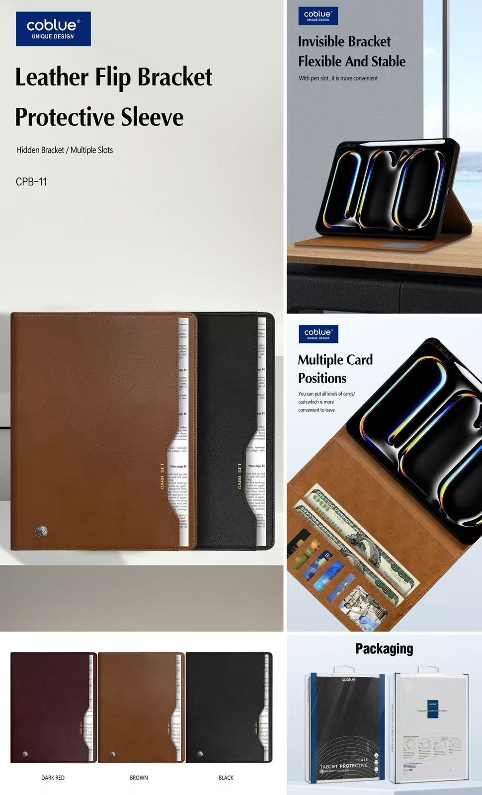 Upgrade your iPad experience with the COBLUE Leather Flip Bracket Pouch. Offering superior protection and multiple functionalities, it’s the perfect accessory for any iPad user. Don’t miss out on this blend of style and practicality!