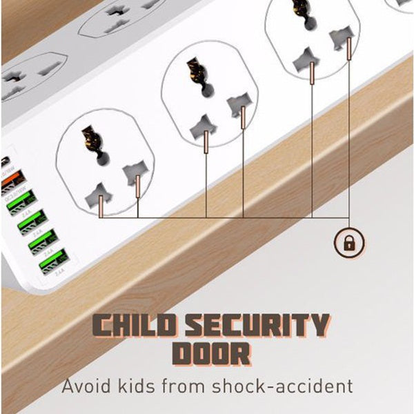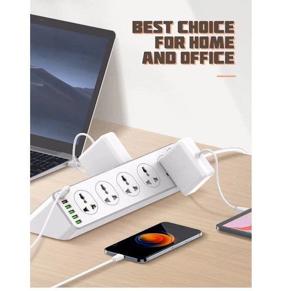 2M heavy-duty power cord can flow optimal power to connected devices.Simultaneously helps to protect multiple-electronic devices while accommodating large adapters.